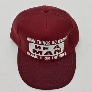 Be A Man Snapback Cap Hat Vintage Maroon Red Blame The Wife Funny Humor Joke