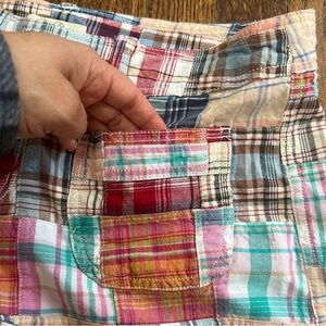 Multicolor plaid lightweight material shorts with functional pockets in front and back. No tags. They have no stretch
