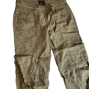 Be Bop Linen Cargo Pocket Pant Vintage Women’s Green Khaki Color Low Waist Y2K 2000s Juniors 7