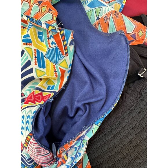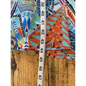 This Be By Chetta B women's wrap dress in size 10 is a vibrant and versatile piece featuring a striking geometric abstract pattern. Designed with short flutter sleeves, tie waist, and a wrap-style closure, this lightweight dress combines both fashion and functionality. Great for casual, work, or summer occasions.
