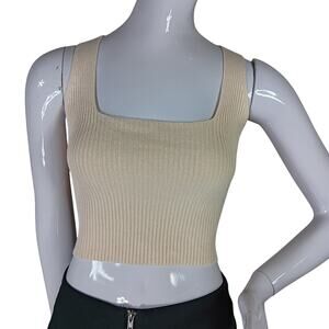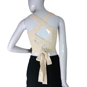 Be Cool Crop Knit Top Size Small / Medium Ribbed Beige Lightweight Ties on Back