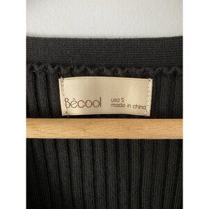 Be Cool Womens Size Small Black Ribbed Cardigan V-Neck Sweater Stretchy