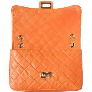 Elevate your style with this beautifully crafted shoulder bag, made from soft genuine calf leather that exudes luxury and comfort. The front flap is secured with a sleek metal turn lock, complemented by elegant gold chromed metal accents that add a touch of sophistication. The golden metal chain shoulder strap features a leather insert, blending durability with chic detail. Its quilted leather and square textured surface create a distinctive look, making it stand out effortlessly. Inside, you'll find a cotton lining with a convenient zip pocket, perfect for organizing essentials. Whether worn as a shoulder or cross-body bag, its transformable long strap can be adjusted into two handles for versatile wear. Handmade in Florence, Italy, this bag is a perfect combination of simplicity, style, and artisanal craftsmanship—truly a statement piece for any wardrobe.