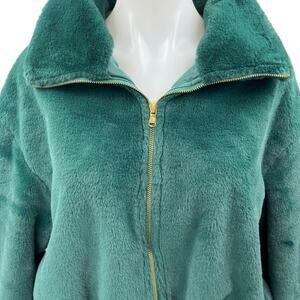 Be Fore Dawn Women's Green Faux Fur Sherpa Fleece Full Zip Sweater Coat Jacket 8