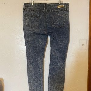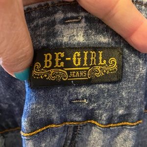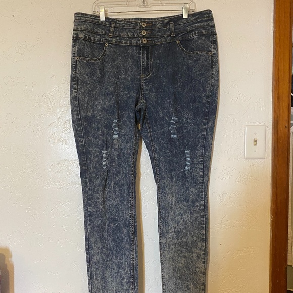 Be Girl Jeans distressed skinny jeans, with decorative front buttons and zipper, functional front pockets, size 18. Waist 41 inches, inseam 29 1/2 inches, length 40 inches.