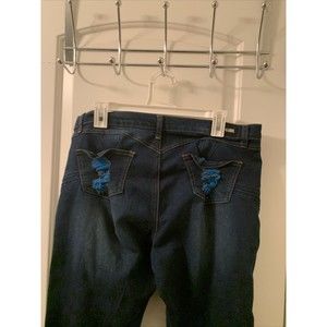 Be Girl Women's Plus Size 16 Blue Capri Jean Shorts Pockets Destroyed Distressed
