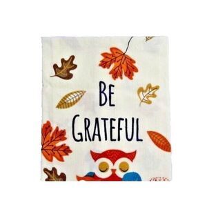 Be Grateful Owls Flour Sack Kitchen Towels Birds Autumn Leaves 2-Pc Gift NEW