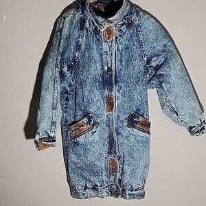 Vintage acid wash womens long denim Coat be in the Current Seen size s