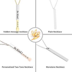 BE KIND OF A BADASS HIDDEN MESSAGE NECKLACE This necklace square pendant features a unique hidden message full of humor and sass, with a 3d engraving of "Be Kind" on the vertical bar hidden in the outer shell, and the inner side displaying " of A Bich" on the vertical bar, making it a double layer of meaning for a great buying experience!
