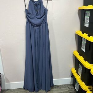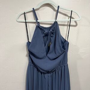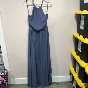 Lulus Size M Halter Chiffon Maxi Dress Blue Lined Waist Tie Sleeveless Cocktail