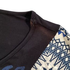 Be Vocal Rhinestone Cross Flutter Sleeve Mixed Print Tunic Top Medium USA Fairy
