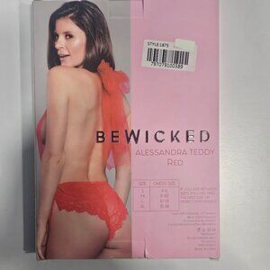 Flirty and sexy Alessandra teddy features a lace and mesh barely there look that is sure to make hearts race. Deep plunge neckline Open back Back tie halter mesh bow Scalloped lace bottom Side tie slits Cheeky bottom.