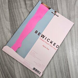 Be Wicked Colorful Opaque Nylon Thigh Highs Stockings, Neon Pink, One Size