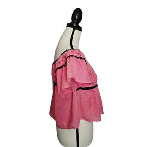 Very Cute Crop Top, Short Sleeve, Crocheted & Lined on the Top, Pullover, Lightweight, 100% Cotton, Armpit to Armpit 16in Length 16in