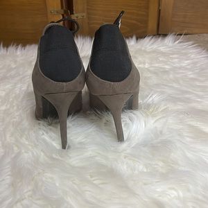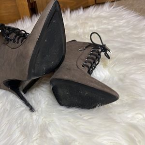 Just like new olive/grey 4.5 in bootie. Lace up front, elastic back