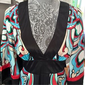 BeBe 100% Silk Graphic V-Neck Dress Size Small