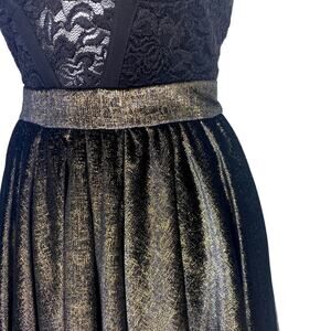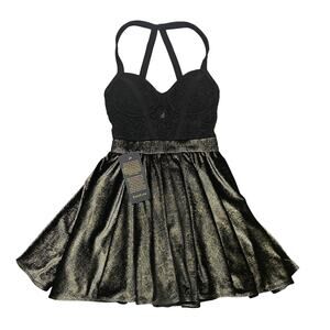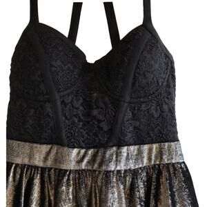 BeBe Lace Metallic Velvet Skater Dress Womens XXS Black Gold Goth Flapper Sheer