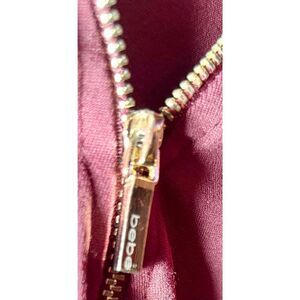 BeBe Maroon Sheer Sleeved 3/4 Zip Top S: S