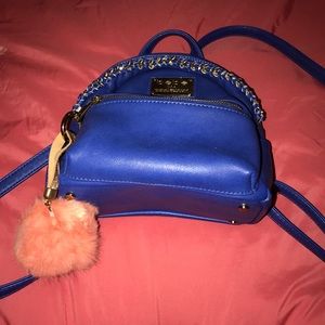 Bebe Mini Electric -Royal Blue Mini BackPack with Gold Chain and Zippers and Fuzzy Key chain