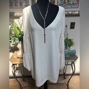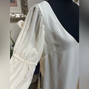 Stylish sexy cream dress with elegant long sleeves. Ideal for your upcoming social events. Completely lined, silky soft material. NEW WITH TAGS! This is a gorgeous dress !! Measurements 19.5” ptp, 33.5” length.