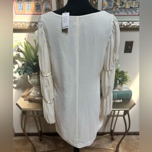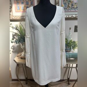 BeBe PLUNGING OFF WHITE V-NECK MINI SHIFT DRESS SHEER SLEEVES FORMAL NWT SZ M