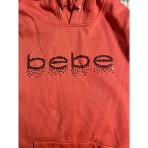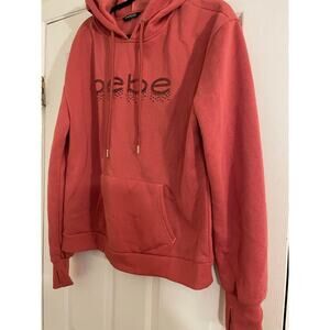 Add a touch of sparkle to your wardrobe with this adorable BeBe pink pullover hoodie! This hoodie is in excellent condition and features a comfortable fit, perfect for everyday wear or a cozy night in.