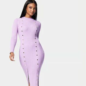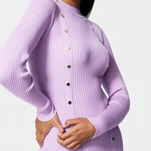 Sleek and chic with a curve-hugging bodycon silhouette, this Snap Sweater Maxi Dress is amped up with double the snap-button closures at the front.