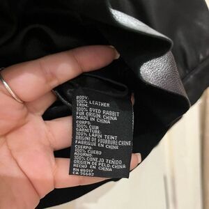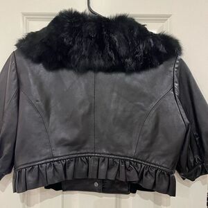 BeBe Soft Leather Dyed Rabbit Fur Cropped Short Sleeve Jacket Black Size Medium