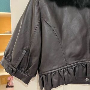 BeBe Soft Leather Dyed Rabbit Fur Cropped Short Sleeve Jacket