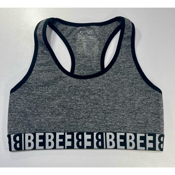 BeBe Sports Bra Top Gray and Black Size Large