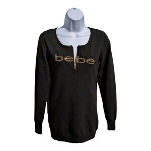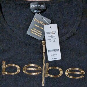 This BeBe pullover sweater tunic is brand new with tags attached. The BeBe logo is gold studded and it has a gold zipper and zipper pull. See photos for fabric details.
