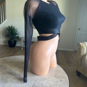 Bebe black SMALL crop top NWOT long mesh sleeves. very sexy