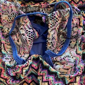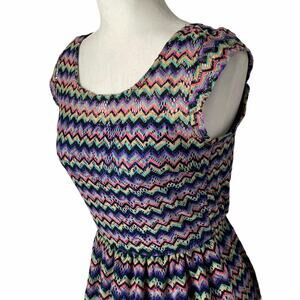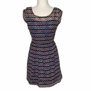 BeBop A Line Dress Multicolor Chevron Lined Cap Sleeves Scoop Neck Size M