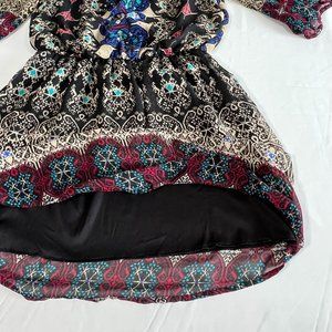 BeBop Black Print Sheer Mini Dress Size Medium Boho Festival Dress