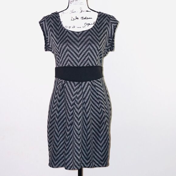 BeBop Black and Gray Chevron Sheath Midi Dress, L