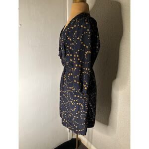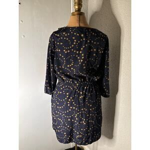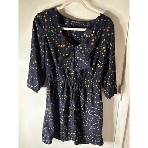 BeBop Blue/Gold V-Neck Midi Heart Dress L Whimsy Holiday Cherry Girl Dopamine
