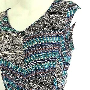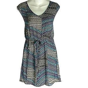 BeBop Dress Size Medium Multi Color Pattern V Neck front Layered Back Measurements Armpit to armpit 18" Neckline to hem 28"