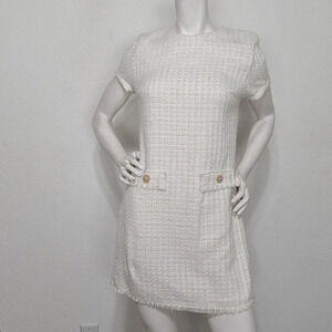 BeBop Be You Be Free White Tweed Academia Shift Mini Dress