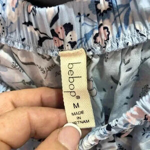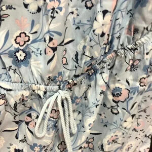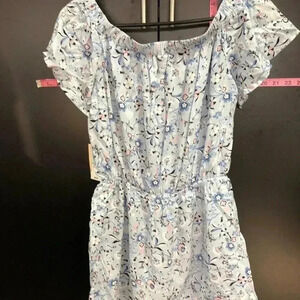 BeBop Off The Shoulder Floral Romper, tie waist, flutter short sleeve