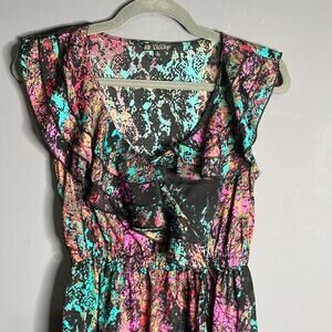 BeBop Pink and Black Paint Splatter Print Sleeveless Dress With Ruffles Size SM