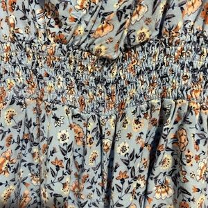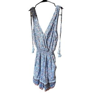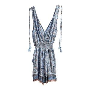 BeBop Charming romper with a floral pattern. Sky blue fabric with vibrant flowers. Gently used no flaws no stains. Perfect for everyday wear.