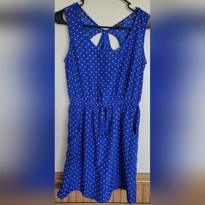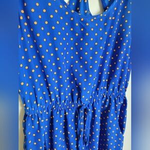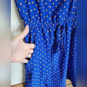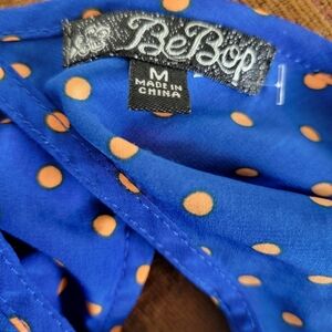 BeBop Womens Blue & Orange Polka Dot A Line Tie Waist Dress Size Medium