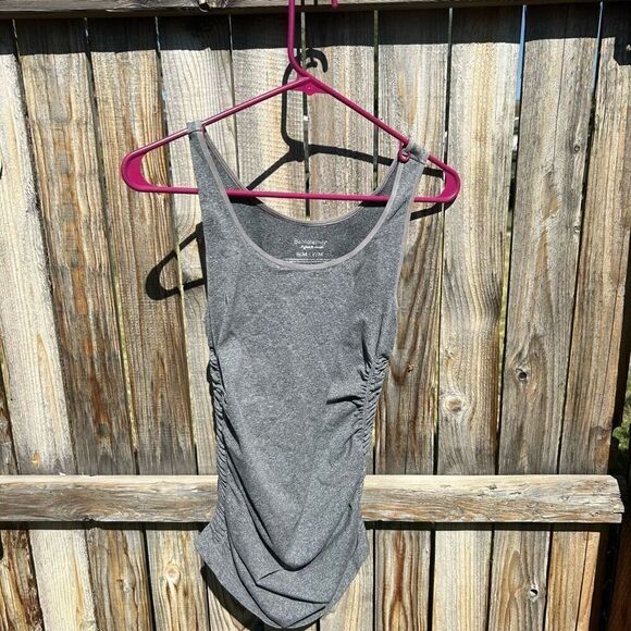 Bematernity tank to with gathered sides. Size is small medium. Width is 15”. Length is 22”. Sm