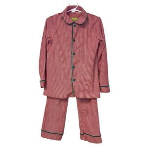 BeMine Collection Pajamas Sz. 6 Red/White Green Piping Boys Button Pull-On
