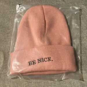 New! "Be Nice" beanie hat. Pink beanie with white embroidered lettering oh cuff. *Reasonable* offers only please.