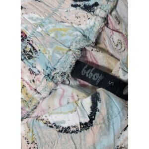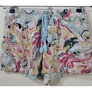 BePop Pink Blue Abstract Print Pull On Shorts Small Lightweight Pleated Front