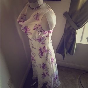Perfect dress for Brides Maid/Prom/High Tea/Derby/Brunch! • Size 11/12 • Hi-Low Style with bottom ruffles • Lavender floral on Cream • New, never before worn • FREE Necklace with dress purchase