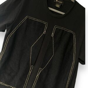 Be.Spoke Unique Black Cotton Blend Casual unisex Streetwear T Shirt w/ Abstract Contrasting Statement Front Panels