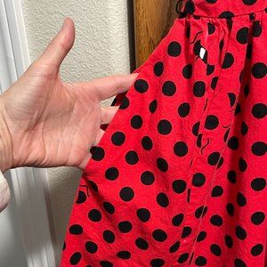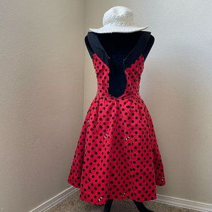 Bea & Dot Modcloth Dress Ladybug Polka Dot Sleevless V Neck Flare Retro Women XS
