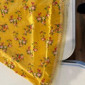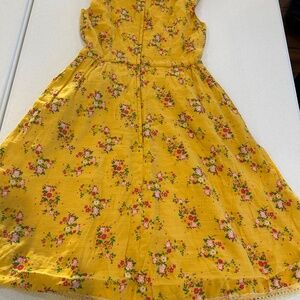 Bea & Dot by ModCloth flowered dress in 55% rayon/ 45% polyester. Lining 100% cotton. Hem was altered (see pics). Waist approximately 13.5”; shoulder to ORIGINAL hem approximately 35.5”; pit to pit approximately 16.25”.
